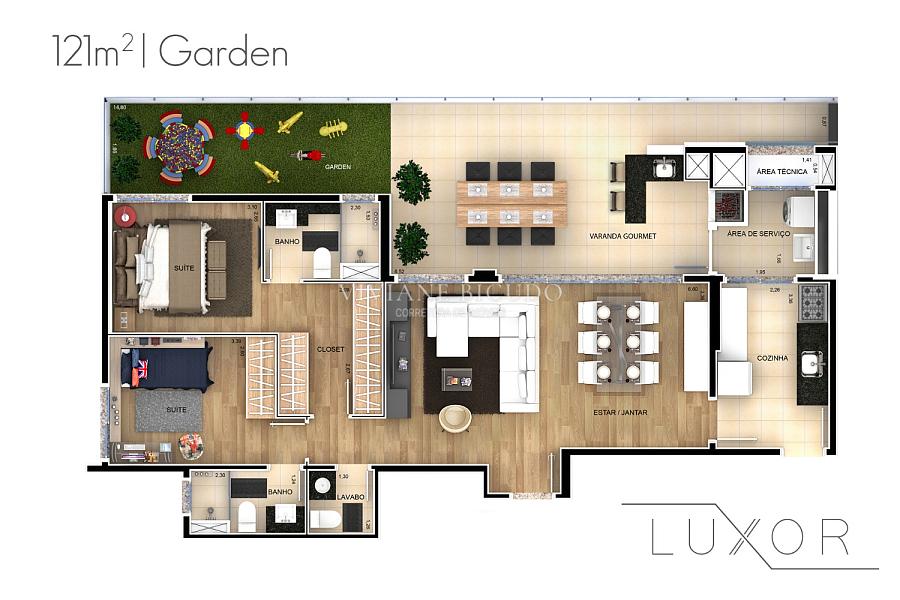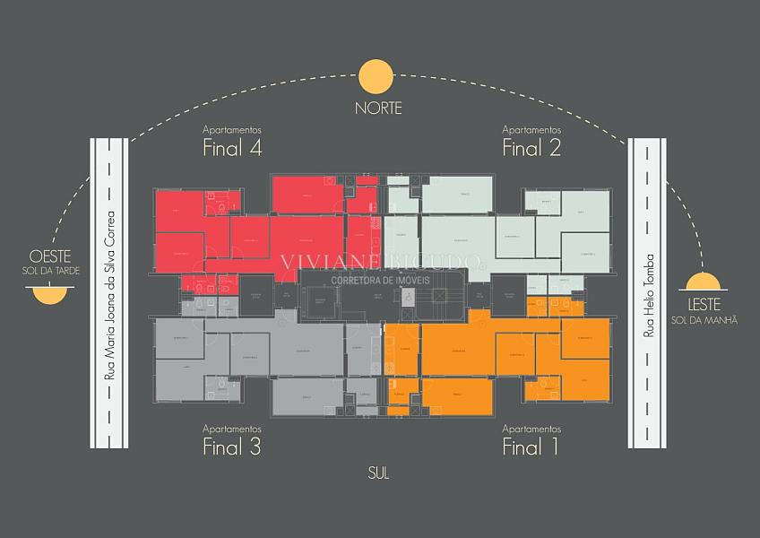 Plantas flexíveis: 2 suítes (1 com closet) ou 3 dormitórios (sendo 1 suíte com closet)
