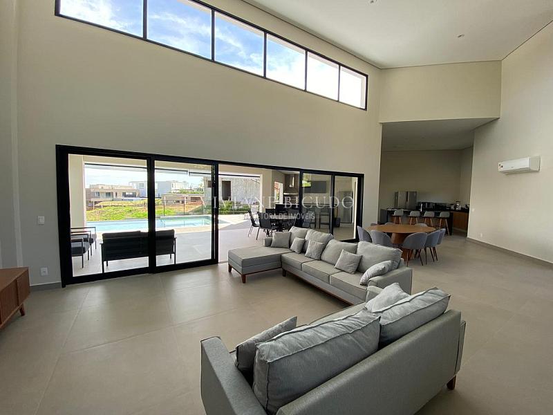 Sala de estar, sala jantar com cozinha integrada, lavabo, despensa, área de serviço, quartos para funcionarios e banheiro de serviço;