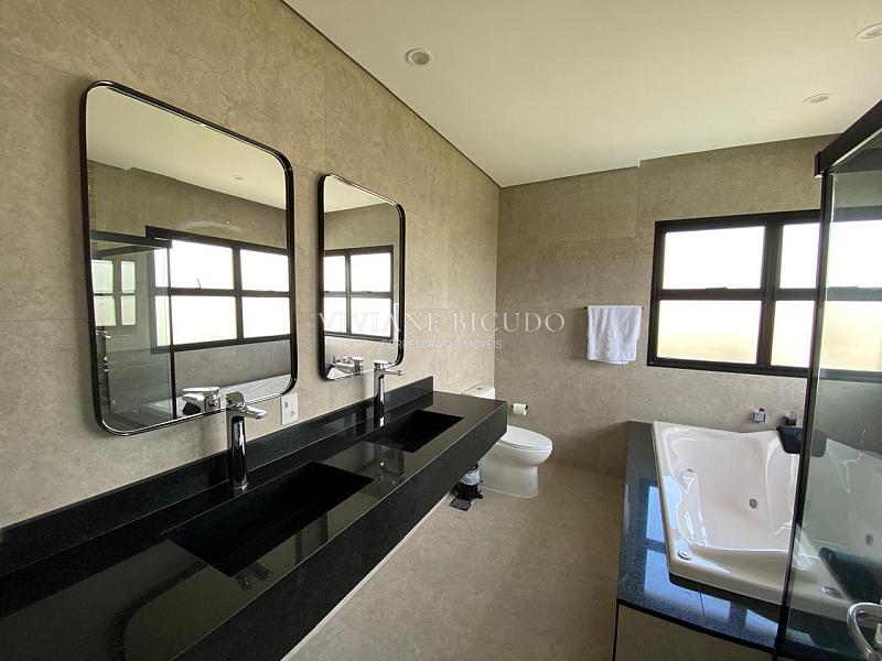 Casa com 5 suítes sendo uma com suíte master com closet e banheira de hidromassagem;