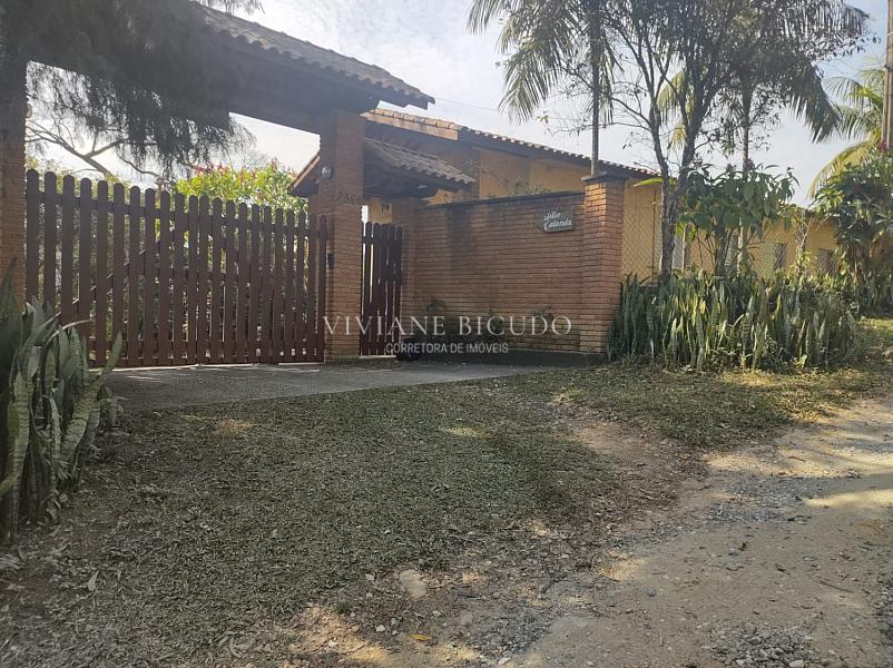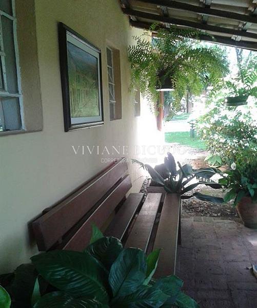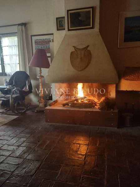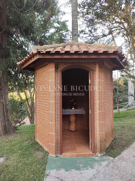 A propriedade oferece uma combinação rara de charme, privacidade e infraestrutura completa. A casa principal, com 140 m², possui 5 dormitórios, 2 banheiros, sala com lareira e um terraço amplo voltado para a área verde. O espaço de convivência conta ainda com salão de festas de 96 m² integrado à ala gourmet, sauna e banheiros, além de piscina de alvenaria 5 x 10 metros.