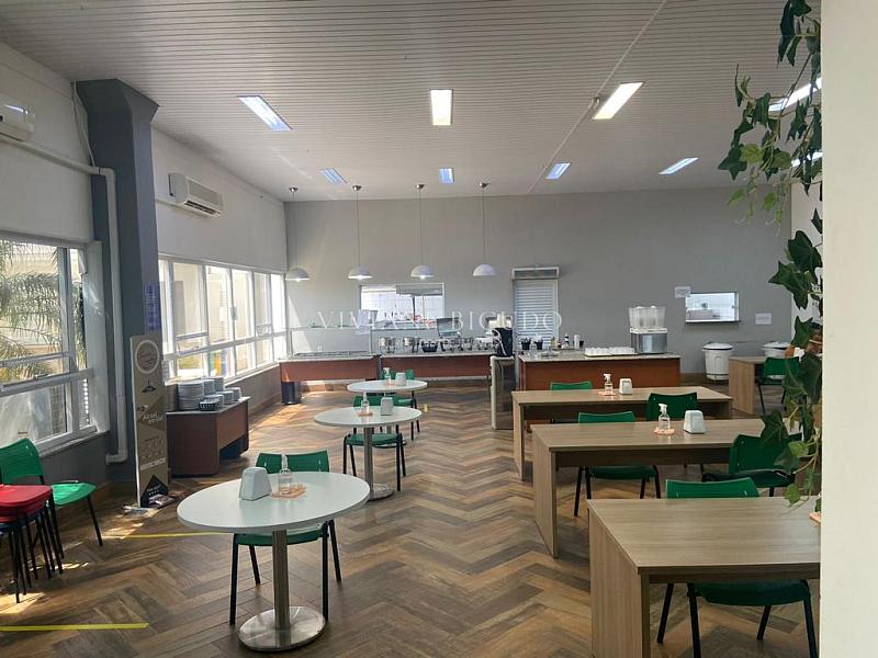 Áreas compartilhadas de 862,02m², contendo recepção, corredor de acesso, refeitório, cozinha, área de serviço, sala de treinamento A, coffee break, corredor, sanitários.